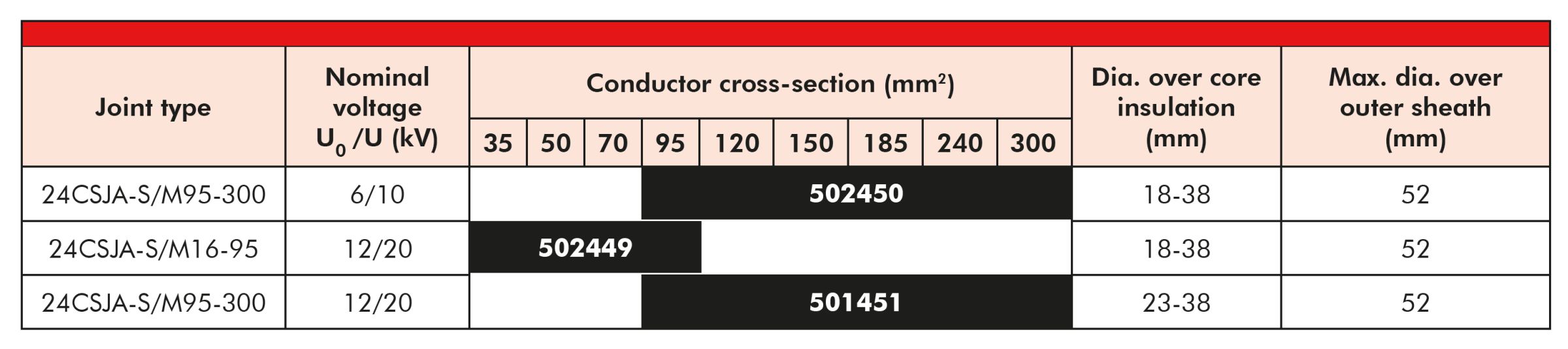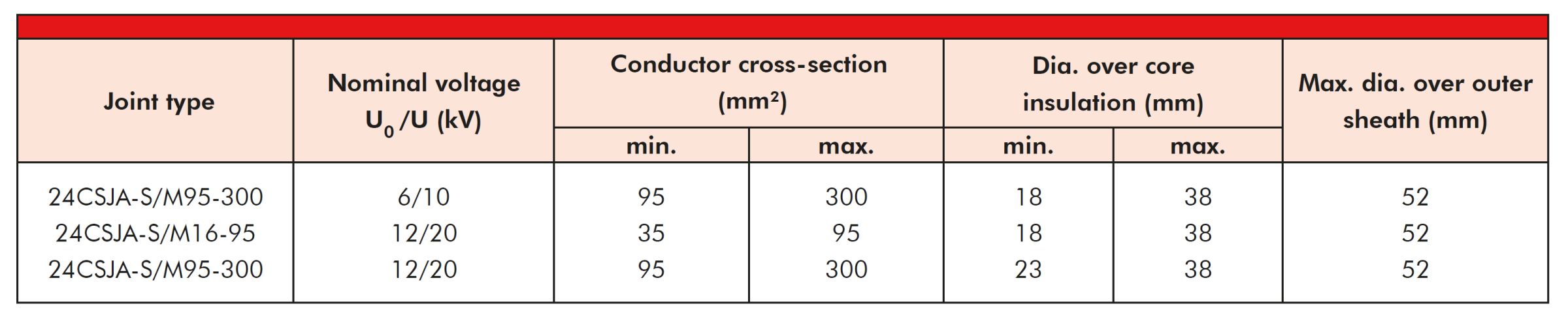 • Cold-shrinkable joints 24CSJA-S exceed international performance standards including CENELEC HD 629.1 and IEC 60502-4.