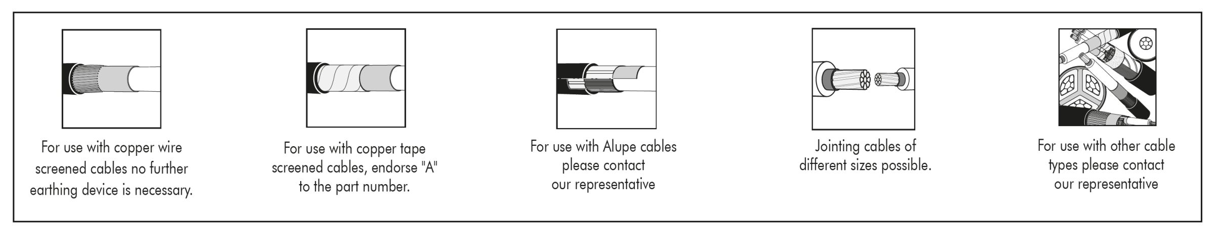Select the straight joint type corresponding to the cable type and dia. over core insulation.