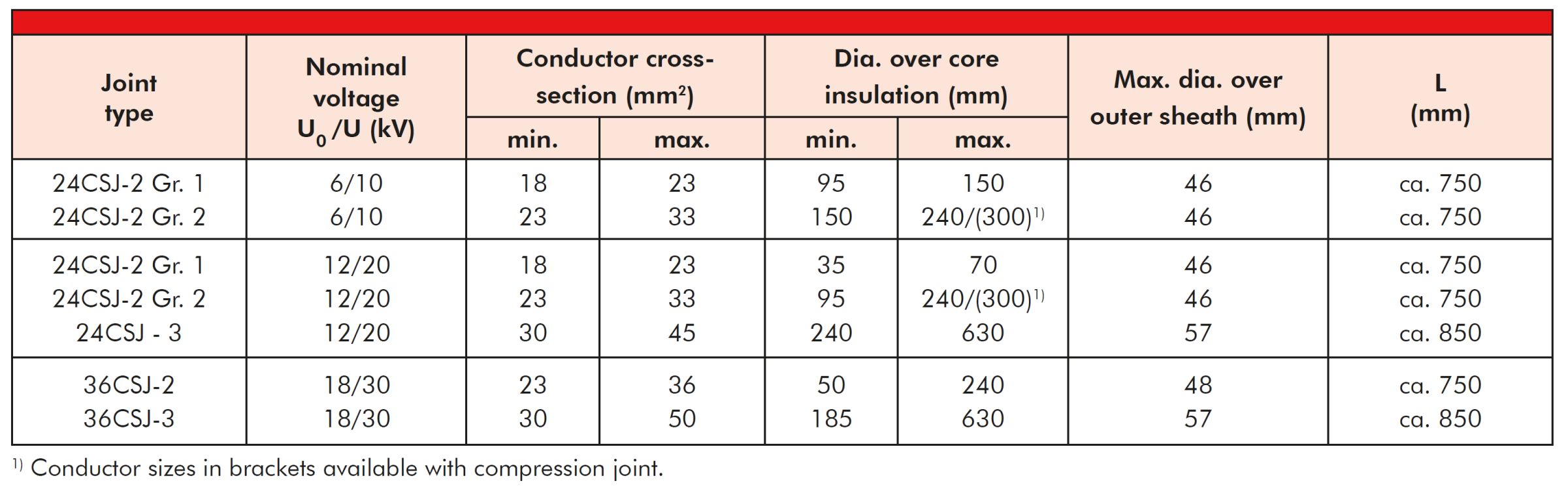 The cold-shrinkable straight joint CSJ meets the requirements of CENELEC HD 629.1.