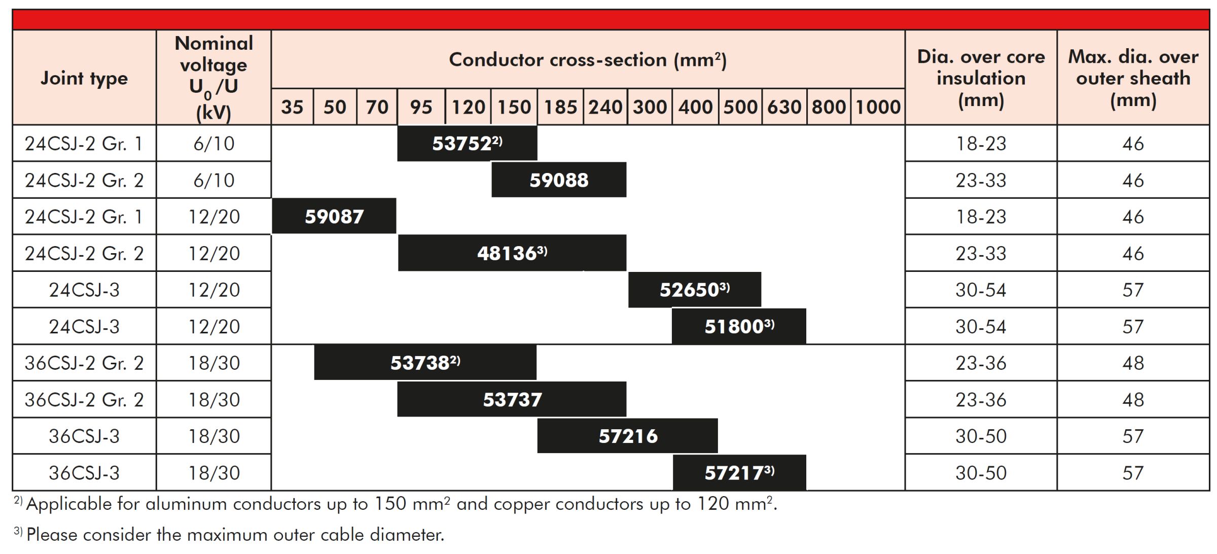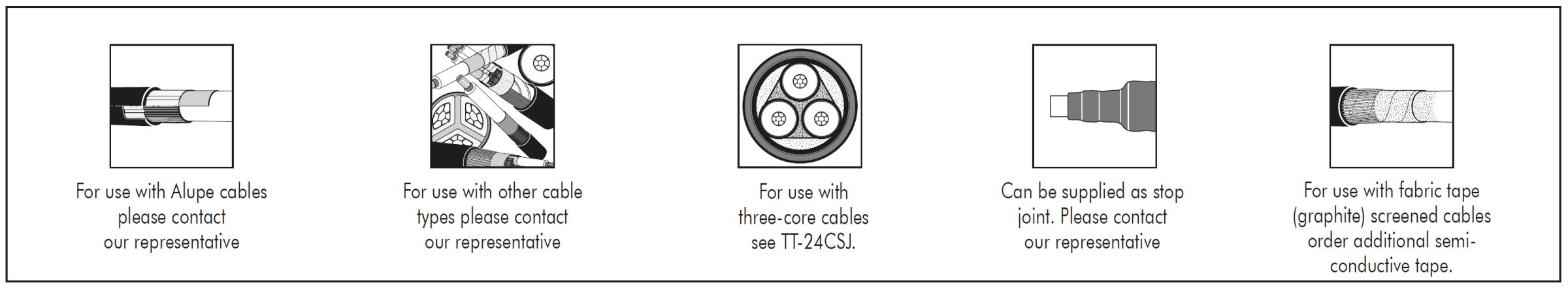 Select the straight joint type corresponding to the cable type and dia. over core insulation.