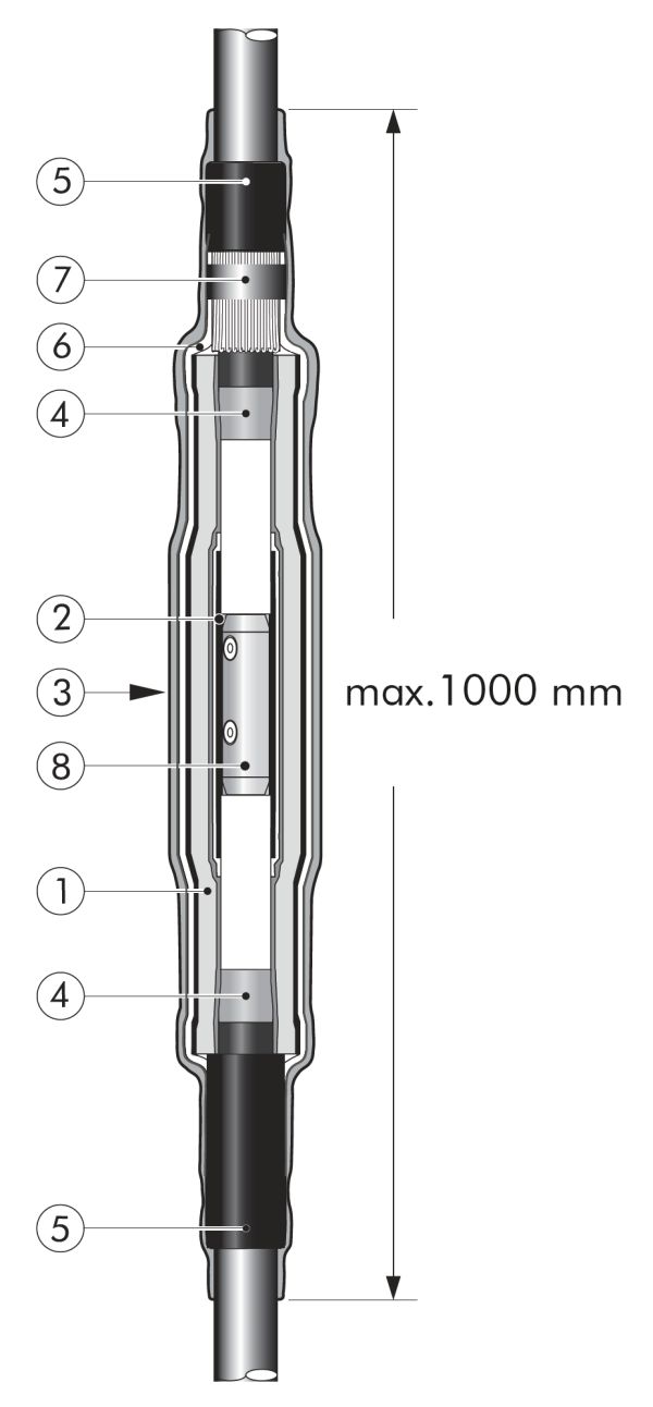 The heat-shinkable straight joint JTS1 meets the requirements of CENELEC HD 629.1 and IEC 60502-4.