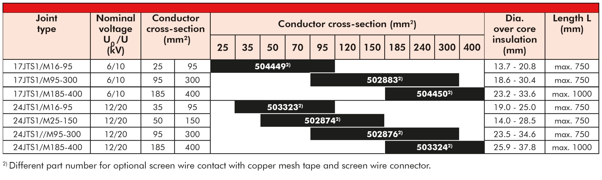 Select the straight joint type corresponding to system voltage, conductor cross-section and diameter over core insulation.