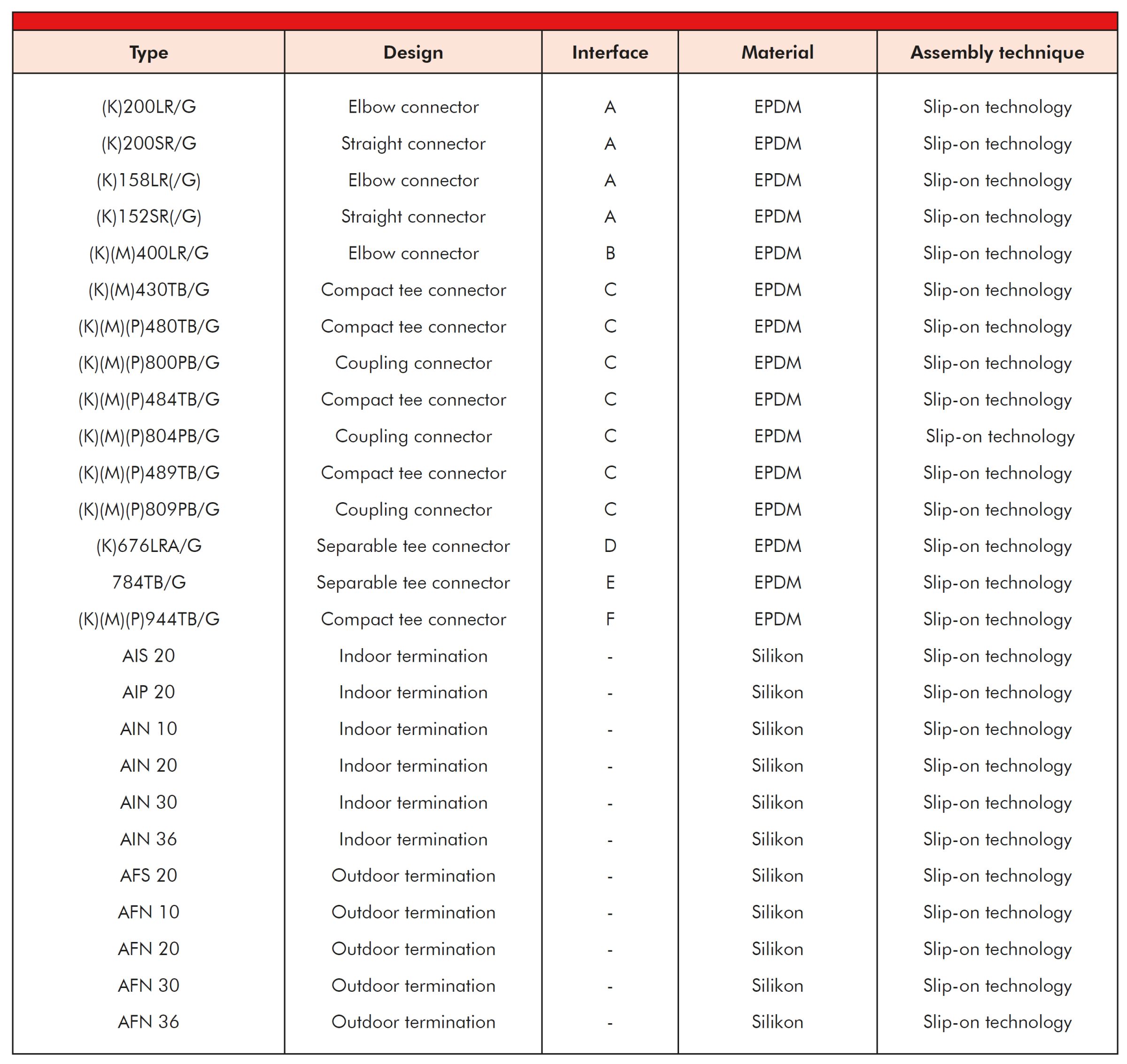 Ready-to-install, pre-assembled cables with connectors and terminations for interface A to F up to 42 kV