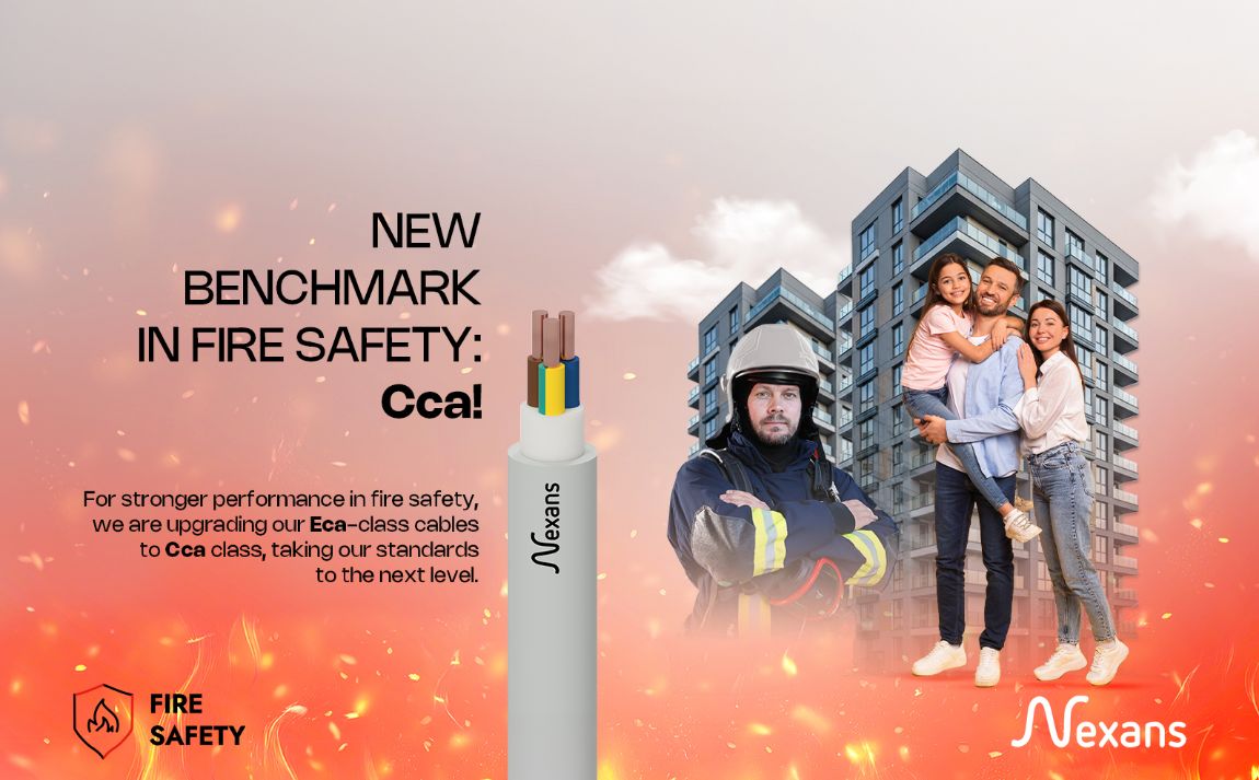 Nexans has adopted CPR Cca-class cables - offering higher fire safety performance - as its new standard. The high fire-performance Cca-class fire safety cables developed at its R&D centers in Denizli and Tuzla help minimize the risk of injury and property loss by slowing the spread of fire, while limiting the formation of toxic smoke to facilitate safer evacuation.