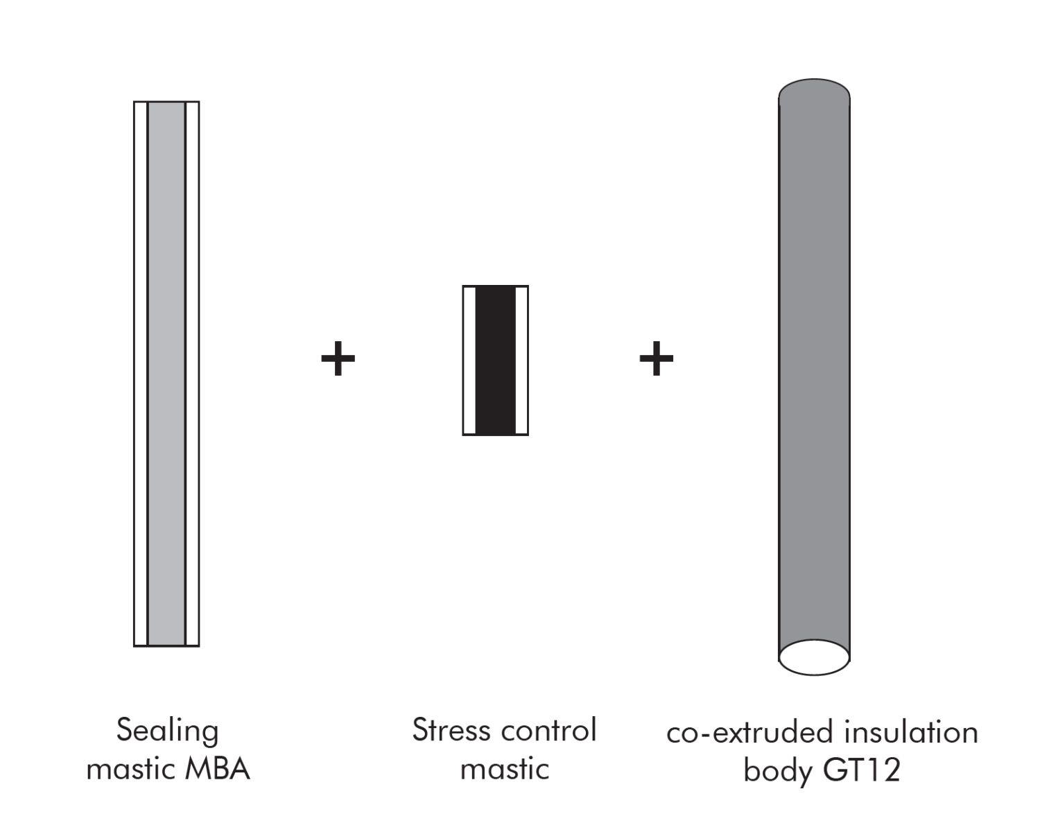 The one-piece, co-extruded (dual wall) insulation body GT12 consists of an inner stress control tube and an outer anti-tracking layer. It can be shrank on the prepared cable in at least one shrinking procedure and is characterized by a very low construction length.