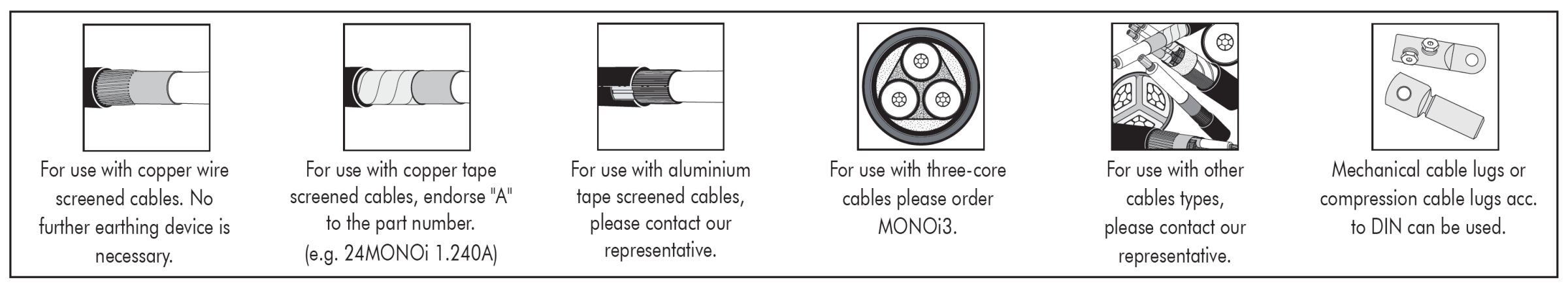 The heat-shrinkable termination MONOi is used for indoor installation on polymeric insulated single core medium voltage cables with extruded easy strip conductive screen or bonded extruded conductive screen. It is suitable for copper wire or copper tape screened cables.