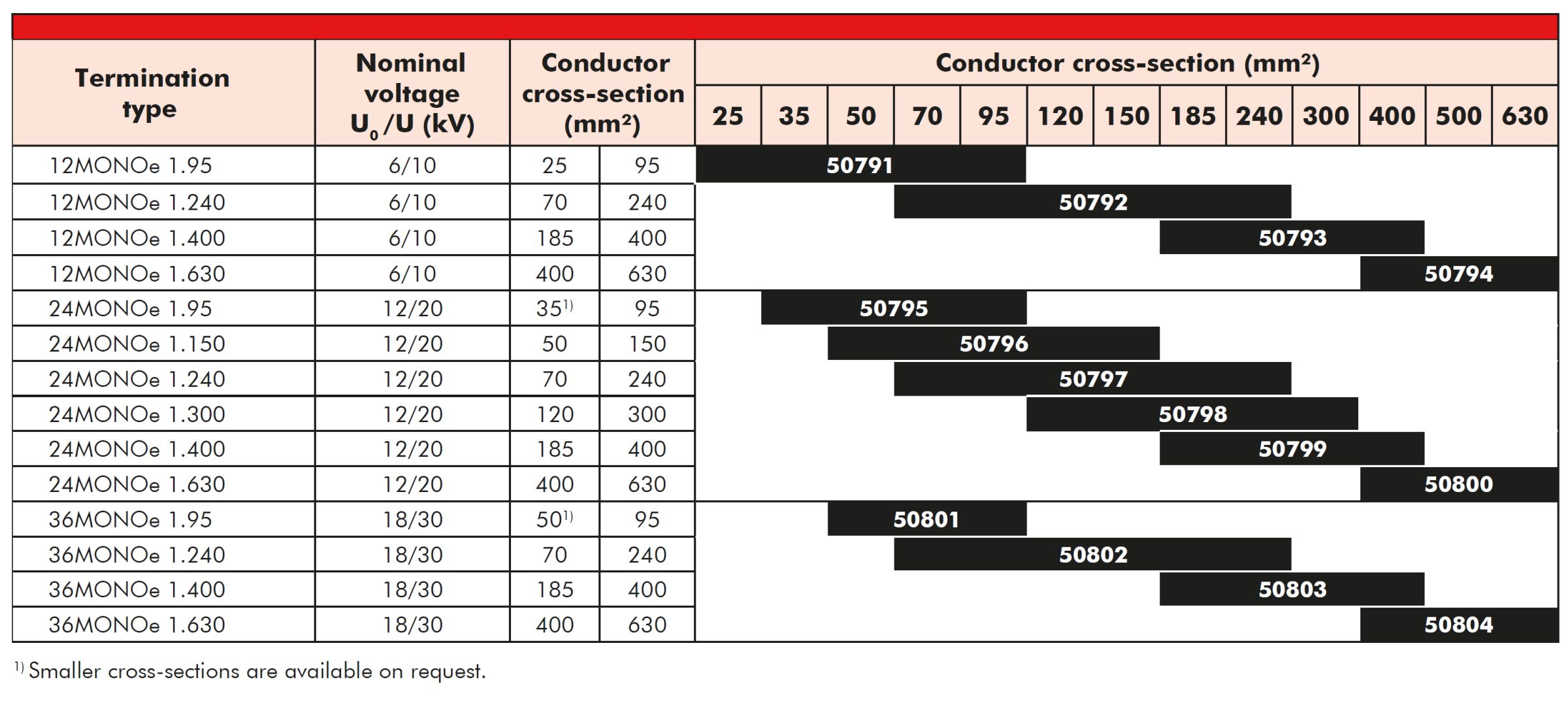 The heat-shrinkable termination MONOe is used for outdoor installation on polymeric insulated single-core medium voltage cables with extruded easy strip conductive screen or bonded extruded conductive screen. It is suitable for copper wire or copper tape screened cables.