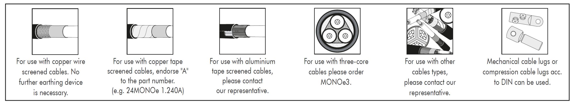 The classification does only apply for polymeric insulated XLPE cables (dimensions acc. to DIN VDE 0276 620) with extruded conductive screen. Please contact our representative, when using other cable types.