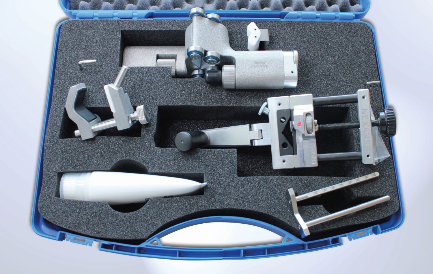 Rigid case with foam pads, two-in-one cable sheath and cable insulation cutter, chamfering tool, devices (stop rings, silicone grease and Allen key for tooling adjustments).